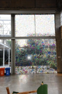 אלפי פריטים צפופים מאוירים בהומור אופייני למאייר עמוס אלנבוגן על הקיר הצפוני המתנשא לגובה של 7 מטרים ומתארים יחדיו את התפתחות תרבות הצריכה המודרנית. האיור העמוס מזכיר לנו חפצים שהקידמה הטכנולוגית השכיחה מליבנו כגון גרמופון, טלפון חוגה ופרימוס, ובה בעת, מנסה לנבא גם את הדורות הבאים של מוצרי הצריכה ואת שכבות הממצאים שיתגלו על ידי חוקרי תקופתנו בעתיד. ואכן – האם ניתן לדעת איך תיראה הארכיאולוגיה של תקופתנו?האם המגמה של מעבר ממידע מודפס למידע מאוחסן "בענן" יעלים תמונות, מכתבים, ספרים, תקליטים ויצמצם את המידע שניתן ללמוד עלינו, או שהמגמה של צריכת יתר של מוצרים עם שימוש קצר ועומס החפצים שאנו זורקים היא זו שתגבר? מה יגרום לדורות הבאים ללמוד על החברה האנושית במאות הראשונות של האלף השלישי לספירה?